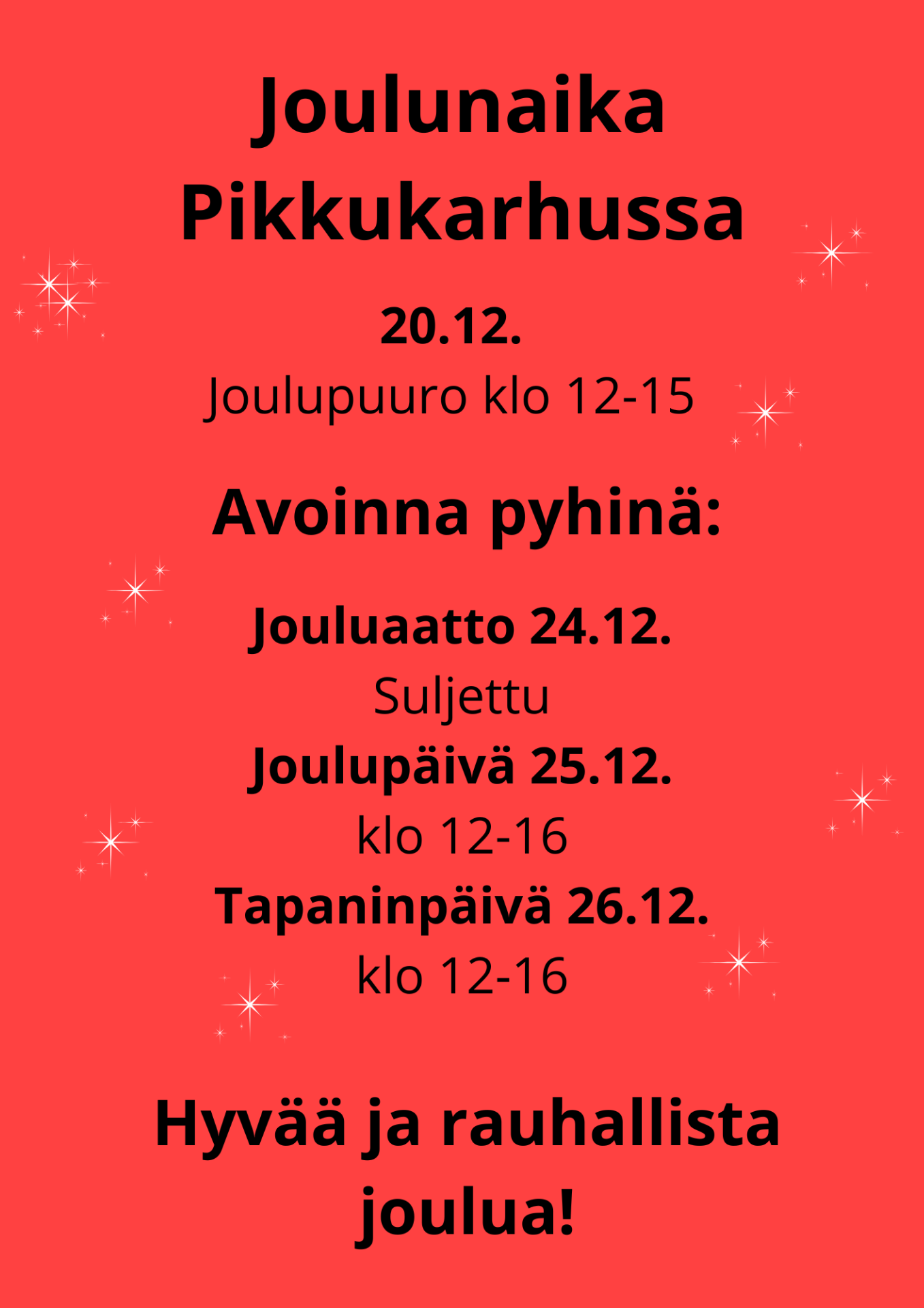 Jouluaattona olemme suljettuna, mutta palvelemme välipäivinä normaalisti!